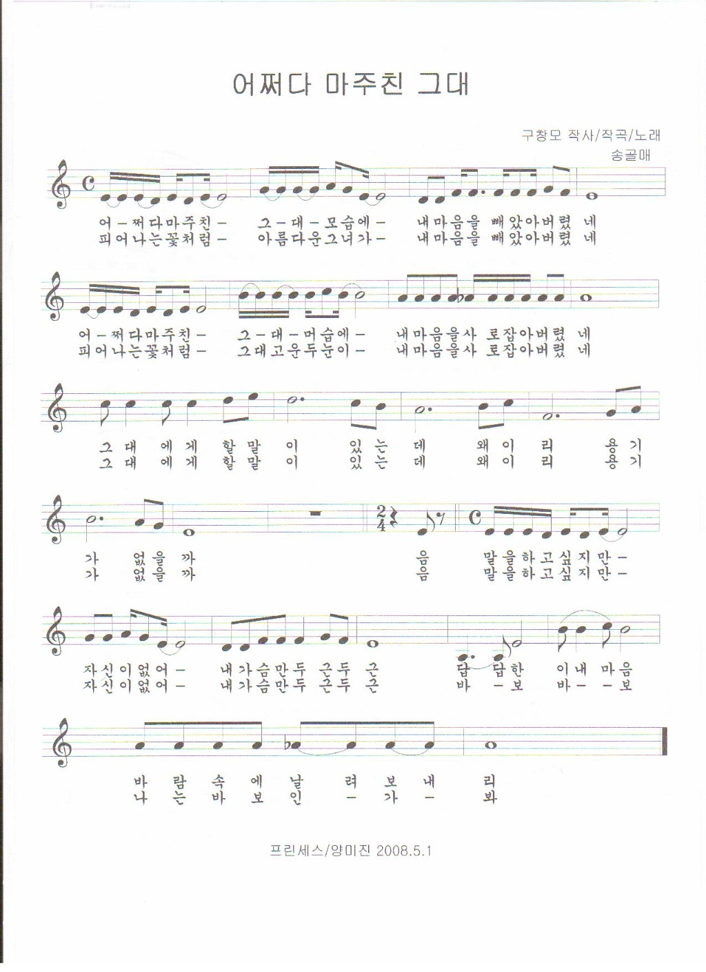 어쩌다 마주친 그대 악보 송골매 네이버 블로그
